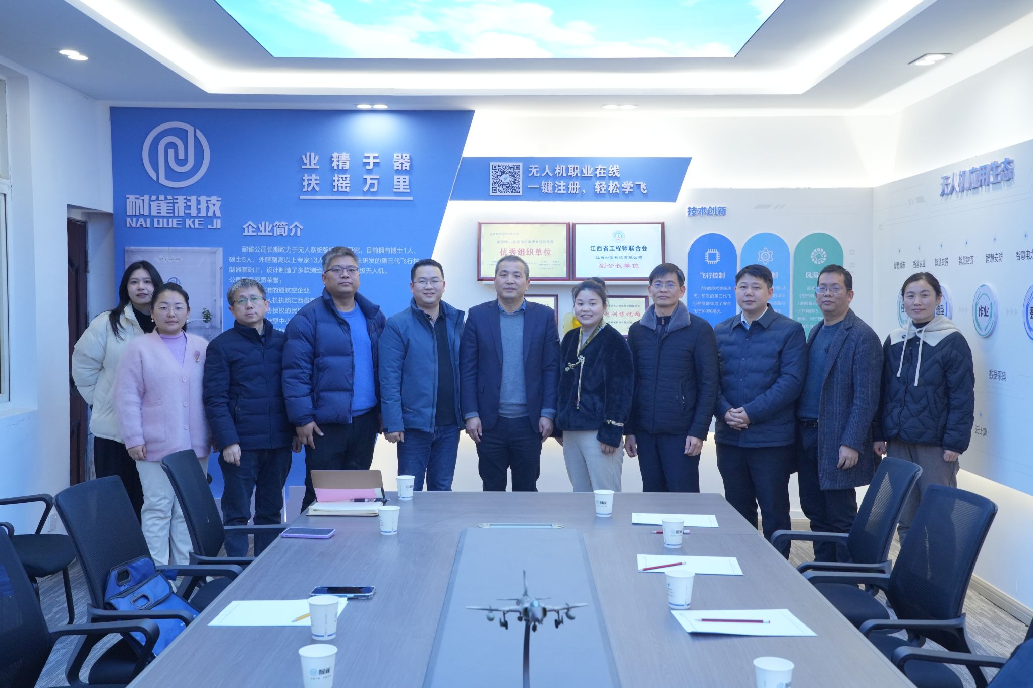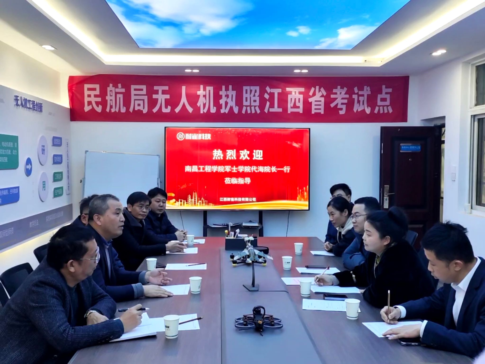 12月17日,BB贝博艾弗森经理代海一行赴江西耐雀科技有限公司开展调研,公司教学管理人员、专业负责人和任课教师参加。在耐雀科技有限公司负责人热情接待下,代海经理一行参观了公司的无人机设备展览区、研发生产中心、无人机执照理论考场、室内飞行区等场所。