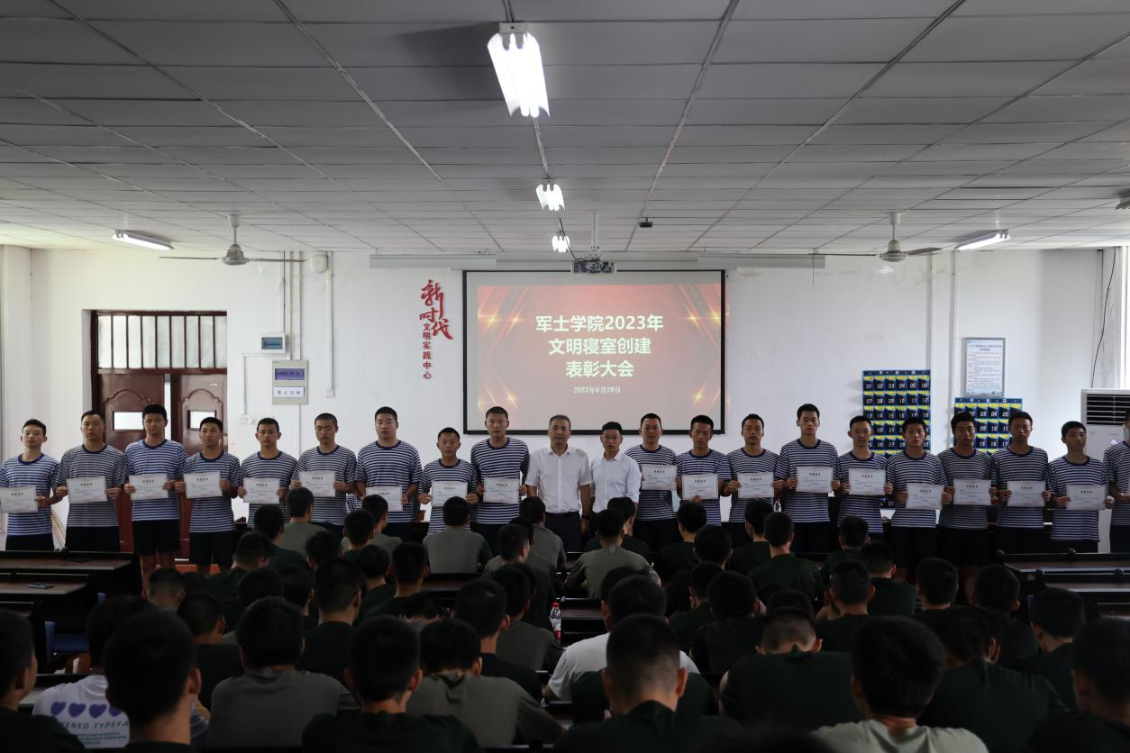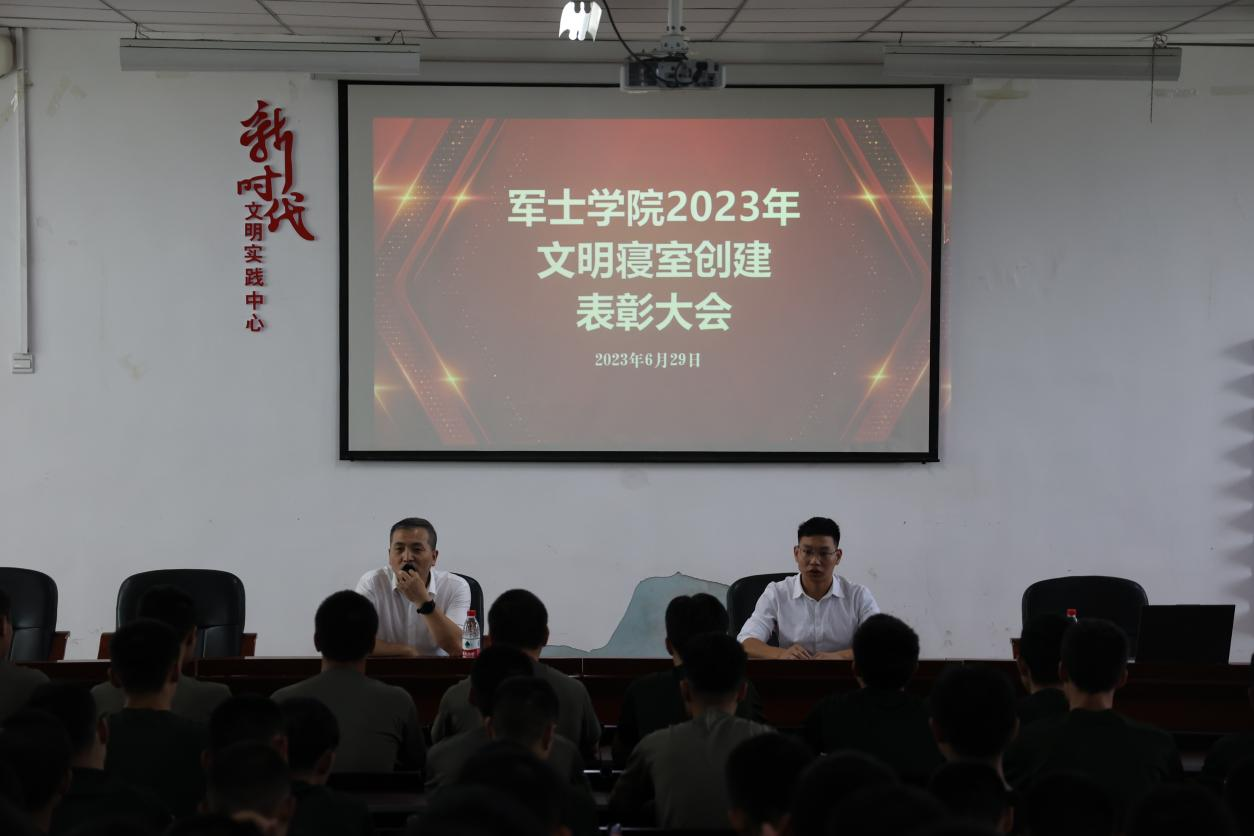 为培养军士生积极践行一日生活制度和内务规范,养成良好的行为习惯,优化育人环境,BB贝博艾弗森于本学期组织开展了文明寝室创建活动,经过定期巡查、集中评比等环节,6月29日,公司在新时代文明实践中心组织开展了2023年文明寝室创建表彰大会。经理代海、辅导员廖章一、文明寝室军士生代表130余人参加会议。