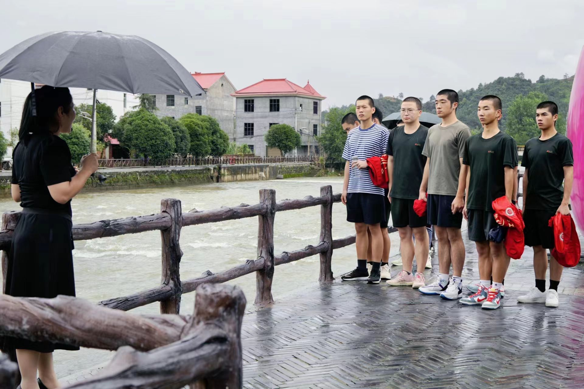 图为沿背村党支部副书记刘爱凤为实践团上反修桥微党课时的场景