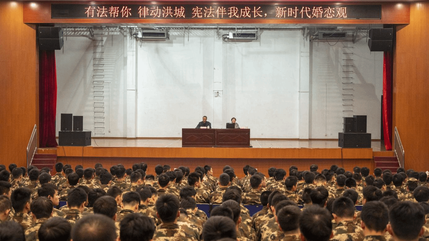 为深入学习贯彻习近平法治思想,弘扬宪法精神,维护宪法权威,更为从宪法层面积极教育引导军士生树立正确婚恋观、弘扬积极向上的精神面貌,12月3日晚,BB贝博艾弗森邀请江西秦风律师事务所支部委员会副书记陈立凤律师为军士生做“宪法伴我成长,新时代婚恋观”主题讲座。本次讲座由公司党委书记章建明主持,公司辅导员、2022级、2023级军士生共计650人参加。