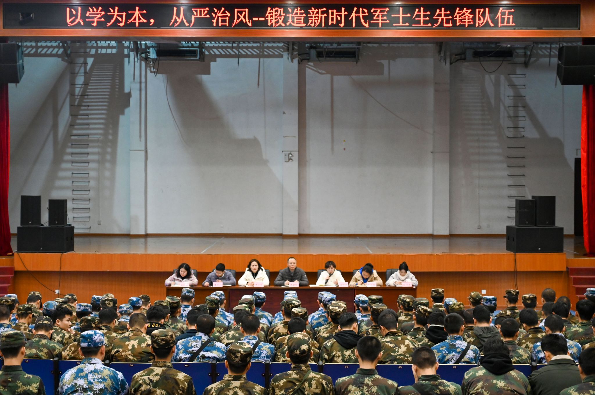 章建明强调,员工干部的第一身份是员工,第一任务是学习,第一标准是过硬素质。他指出,学习是军士生的立身之本,成绩不达标者,难以服众;干部岗位不是“铁饭碗”,干部动态调整机制将常态化;纪律面前没有例外,考风考纪更是军士生的“道德高地”,凡考试违纪者,违纪记录将跟随档案。他鼓励同学们要以铁纪钢规筑牢学风考风防线,以先锋姿态扛起使命担当,把“学习力”当作核心竞争力,把“纪律性”刻进灵魂血脉,真正成为“听党指挥、能打胜仗、作风优良”的新时代军士生标杆!