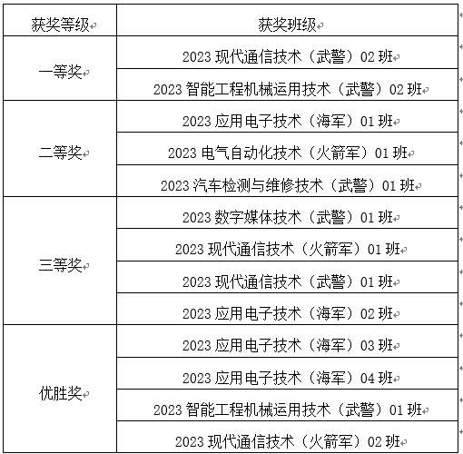 本次合唱比赛校歌为必选曲目,红歌为自选曲目。活动自发布以来,2023级各区队积极响应,认真备赛。经过紧张激烈的比拼,共评选出一等奖2项、二等奖3项、三等奖4项、优胜奖若干项,展示了军士生良好的精神风貌。