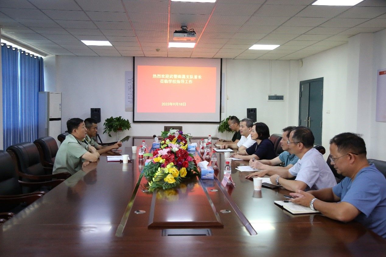 9月18日下午,武警南昌支队政委穆云翔大校,教导队大队长梁斌少校来校指导工作。副董事长周敏丹,公司党委委员、党委统战部部长欧阳子龙,公司党政班子成员参加座谈会。