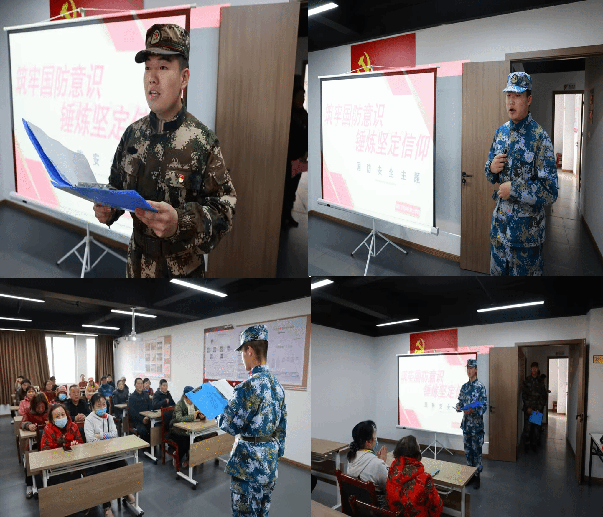 随后,军士生代表分别诵读了《党旗颂》《聆听》《红船,从南湖起航》等红色诗歌,他们以诗诵情,以歌咏志,充分展现军士生昂扬奋发的精神面貌和矢志不渝的家国情怀。最后,江大南路社区党委江华书记和社区老党员分享了他们自己与党的故事,讲述在党的坚强领导下,国家、社会、社区的沧桑巨变,结合自身实际和切身感悟,折射出幸福生活源于党的领导,让大家更加了解党,深爱党,感党恩。同时,他们勉励大家要将这份感谢放在自己的心里,坚定理想、勇担使命、不畏困苦、不懈奋斗。军士生代表赵之政宣讲国防安全知识,让大家深刻认识到开展全民国防教育的重要性。