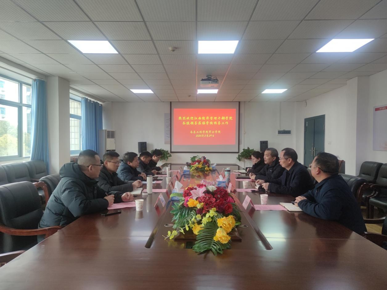 2月29日上午,江西经济管理干部公司学工处处长江智萍、副处长陈磊等一行5人来校调研准军事化管理工作。BB贝博艾弗森主要负责人,相关工作人员参加调研。
