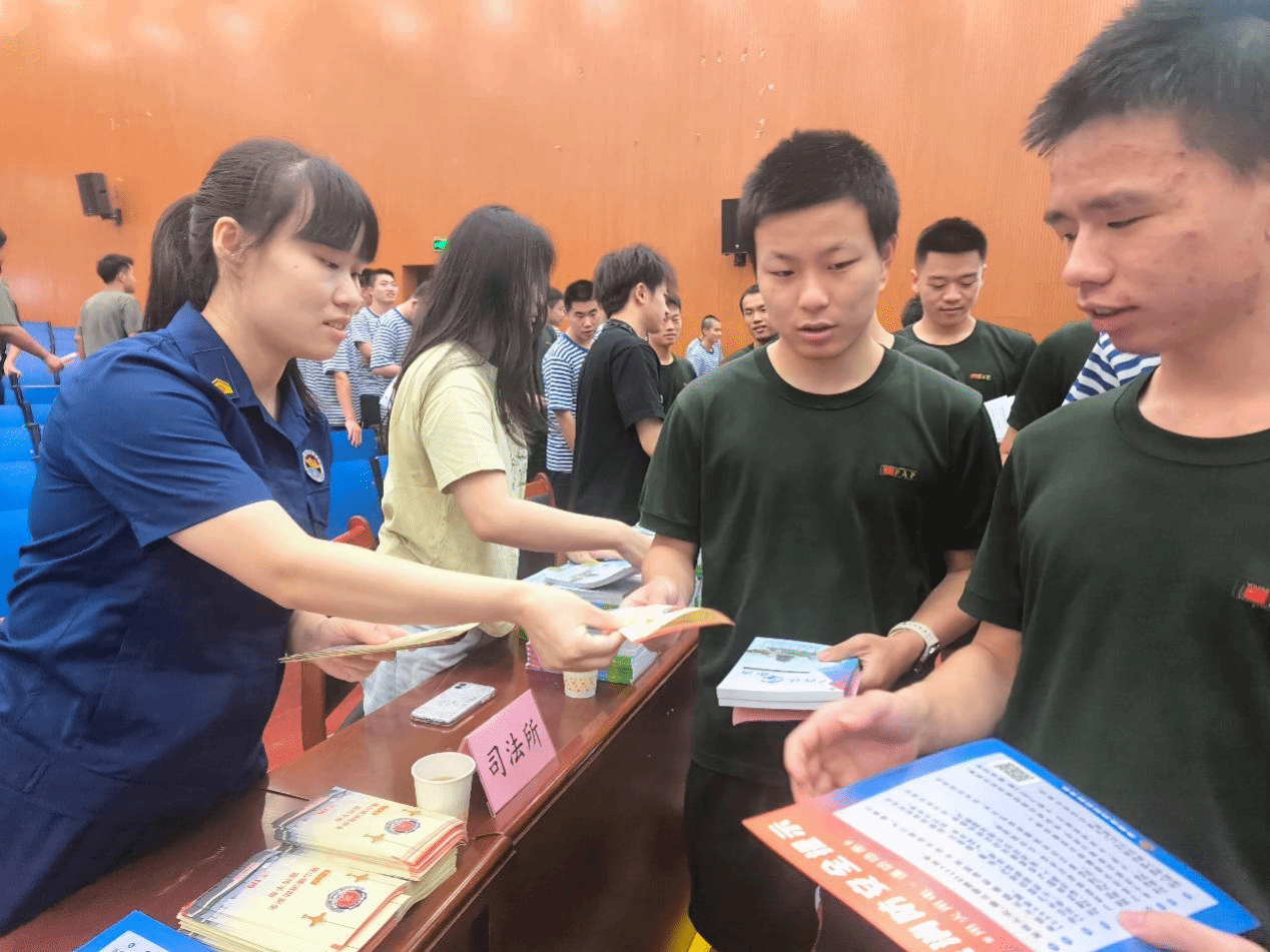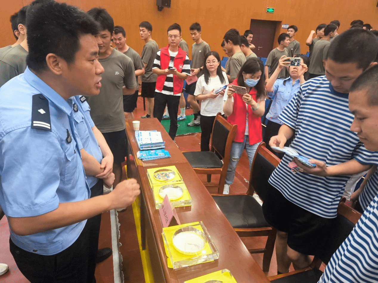 活动中,通过电子大屏幕、悬挂横幅、设置展牌、发放宣传折页、宣传讲座等多种形式,为军士生宣传讲解禁毒、电信网络诈骗、消防安全、普法等知识。