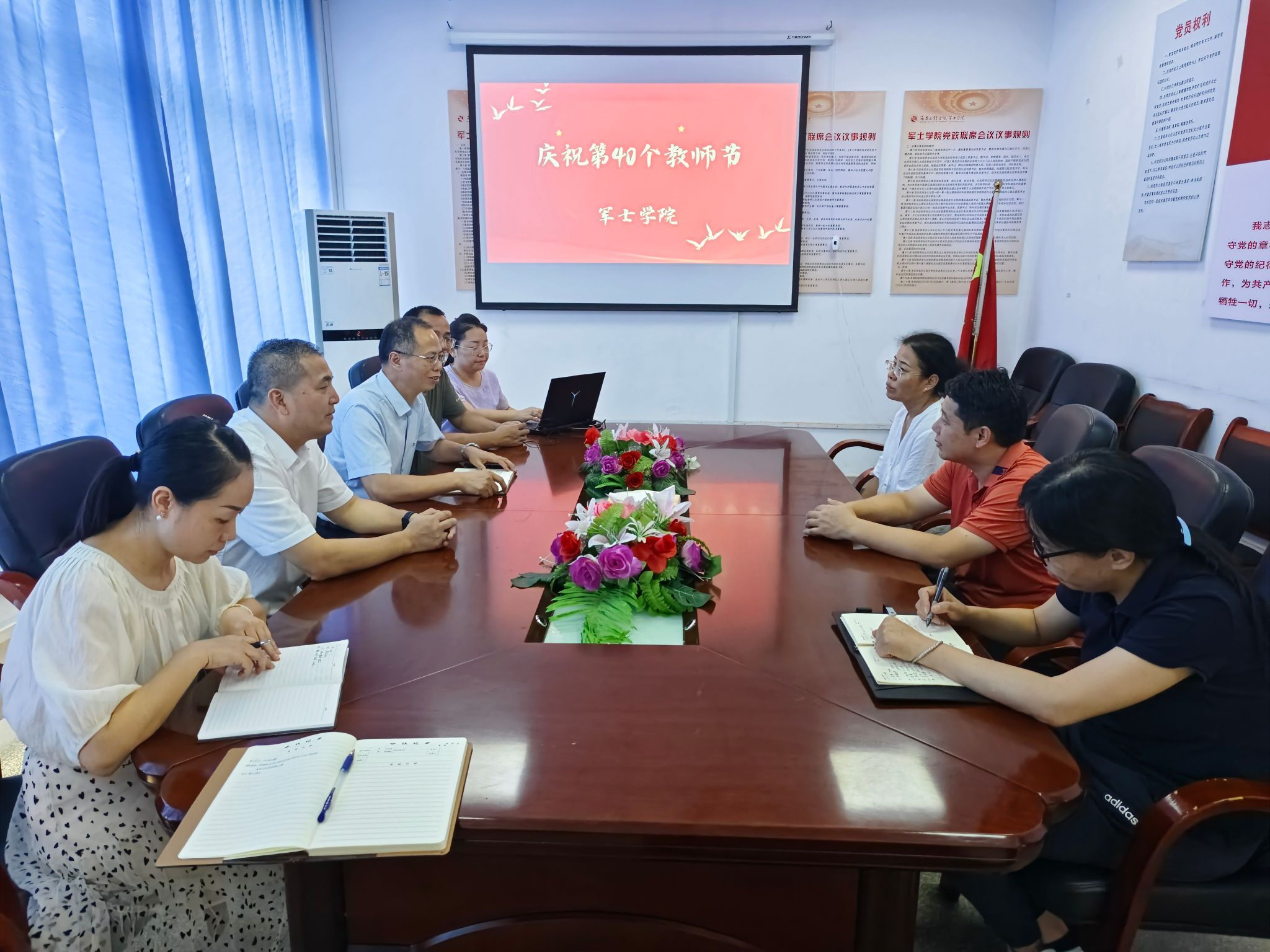 经理代海向教师们致以诚挚的节日问候,对教师们坚守在教学一线,在竞赛以及培养军事人才等方面所做出的贡献给予了高度赞扬。