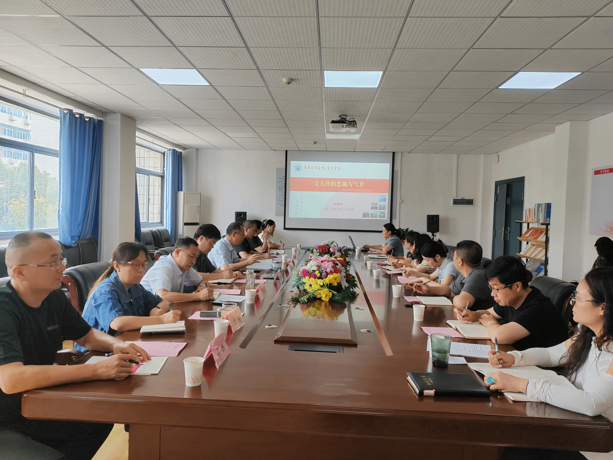 5月27日上午,公司党委书记章建明以《文天祥的忠诚与气节:军人核心价值观的历史诠释》为题开展专题党课,党课由彭桥校区服务中心主任戴湖北主持,瑶湖公司党总支副书记张晓航、公司党委全体党员参加。